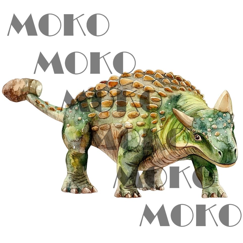 Dino Ankylosaurus Bügelbild, Niedliches Dinosaurier Motiv in Wasserfarbe zum Aufbügeln, Lustiges Urzeit Design für Kinder T-Shirt