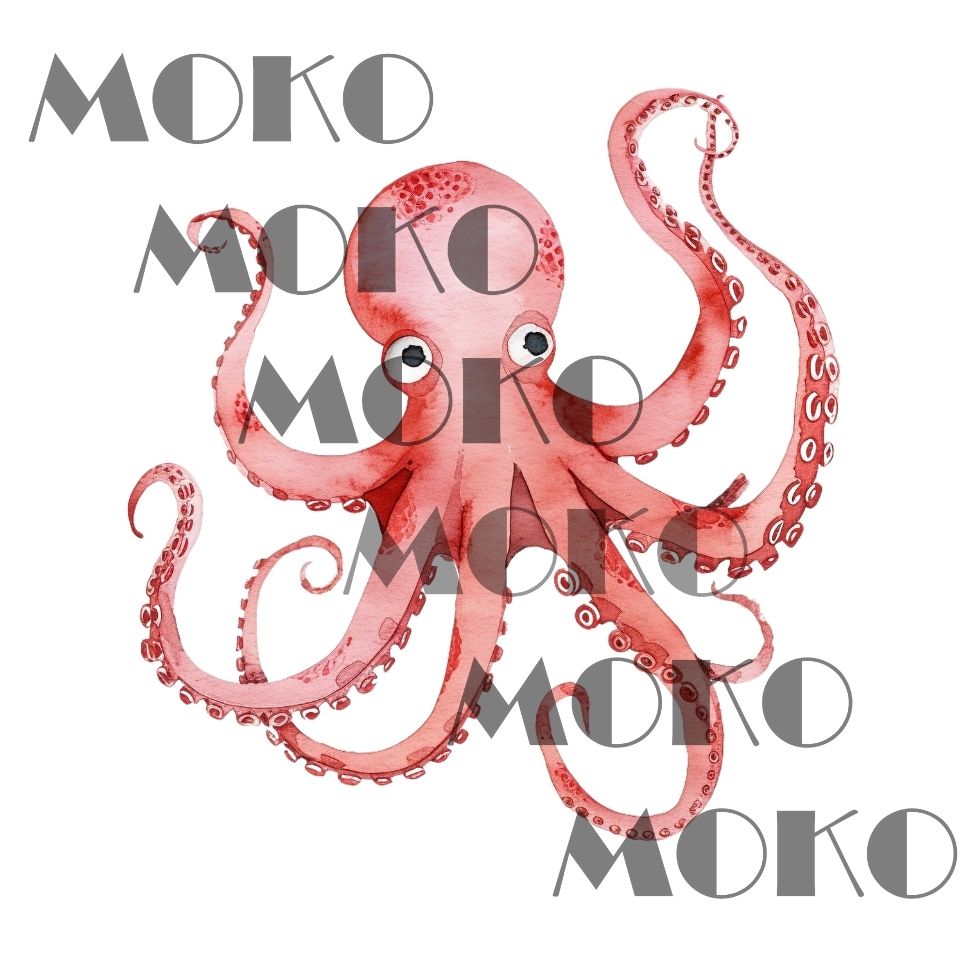 Oktopus Bügelbild, Niedliches Meeresmotiv in Wasserfarbe zum Aufbügeln, Roter Oktopus, Lustiges Ozean Tier Design für Kinder T-Shirt und Stoffe