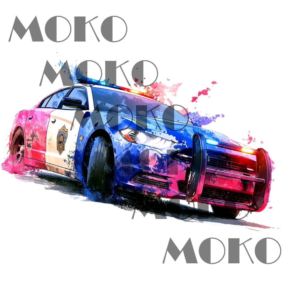 Schreibe die erste Rezension für „Polizeiauto Bügelbild, Cooles Fahrzeug Motiv mit Farbspritzern in Wasserfarbe zum Aufbügeln, Trendiges Auto Design für Kinder T-Shirt und Stoffe“
