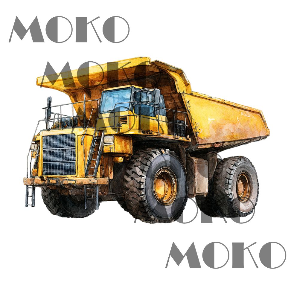 Riesenkipper Bügelbild, Cooler Gelber Baustellenfahrzeug Motiv in Wasserfarbe zum Aufbügeln, Starkes Fahrzeug Design für Kinder T-Shirt und Stoffe