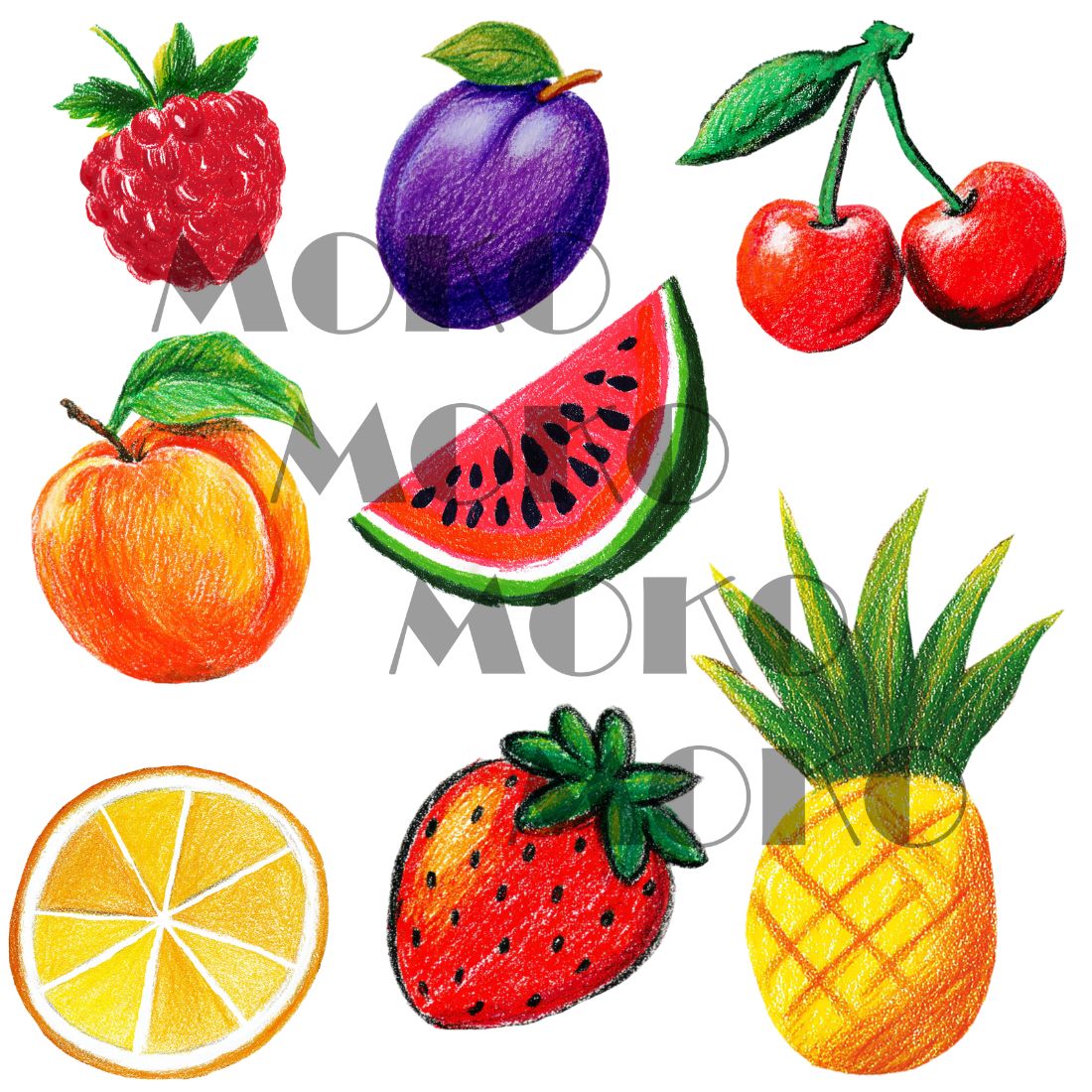 Sommerfrüchte Mix Bügelbild, Süßes Obst Motiv in Wasserfarbe zum Aufbügeln, Design für T-Shirt