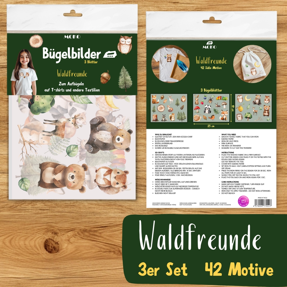 Waldfreunde Bügelbilder: Bären, Hase, Blätter, Bäume und vieles mehr; es ist alles mit dabei!